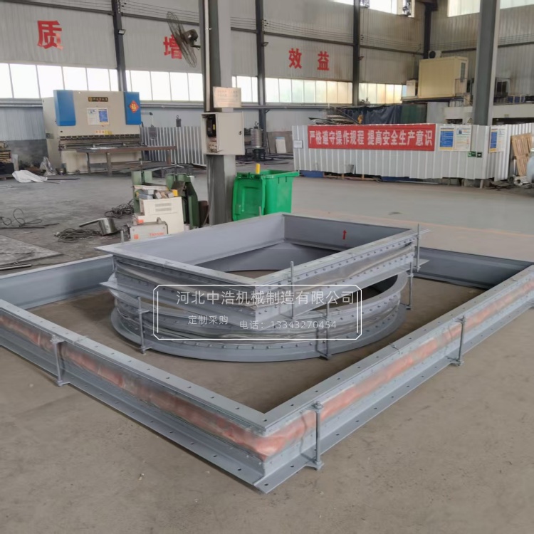 首先根據(jù)材料特性,煙道蒙皮膨脹節(jié)一般由硅膠布、氟膠布、玻璃纖維以及鋼絲網(wǎng)等多層復(fù)合材料組成,具體要根據(jù)系統(tǒng)工況條件去選擇,多層復(fù)合結(jié)構(gòu)的組成,以及收否加鋼絲網(wǎng)和防腐層,而層數(shù)和加固方案都需要滿足工況要求。設(shè)計(jì)參數(shù)要匹配,安裝前要明確系統(tǒng)閾值大工作壓力和系統(tǒng)壓力通常為常壓1.5倍,若是高溫需要對(duì)根據(jù)介質(zhì)溫度材料溫度與壓力曲線進(jìn)行設(shè)計(jì)。安裝方向和承壓方式也需要注意,要區(qū)分正負(fù)壓,正壓壓力作用于內(nèi)部,需確保法蘭和壓板緊固均勻。而負(fù)壓一般真空或負(fù)壓系統(tǒng),需注意增加支撐,避免蒙皮吸扁可能。安裝時(shí)需設(shè)置足夠?qū)蛑Ъ芎凸潭ㄖЪ埽苊夤艿劳饬椭亓恐苯幼饔迷谂蛎浌?jié)上,導(dǎo)致局部超壓。安裝過程中避免扭曲、拉伸壓縮蒙皮,否則會(huì)降低承壓能力。還需注意介質(zhì)情況,若腐蝕性介質(zhì)需增加防腐涂層避免蒙皮腐蝕,若是顆粒介質(zhì),可增加導(dǎo)流板或耐磨層,防止磨損,增強(qiáng)使用壽命,,拉伸壓縮按設(shè)計(jì)要求與壓縮或預(yù)拉伸,避免蒙皮過度承壓。
