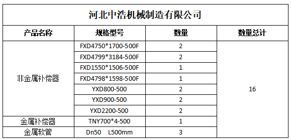 尊敬的李經(jīng)理,感謝您對河北中浩 產(chǎn)品信任與選擇。很高興通知您,您在河北中浩訂購非金屬蒙皮膨脹節(jié)、金屬波紋補償器、金屬波紋軟管等產(chǎn)品, 已經(jīng)完成生產(chǎn)、檢驗、包裝等全部工作,請您做好收貨準備,到貨后及時查驗。