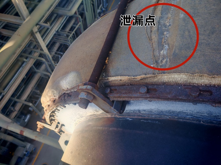 連接部位密封失效造成高頻漏點(diǎn),可能由于法蘭密封面平整度不達(dá)標(biāo),法蘭螺栓緊固不均勻 導(dǎo)致蒙皮法蘭周邊受力不均,出現(xiàn)泄露。密封墊片材質(zhì)與介質(zhì)不匹配,墊片老化、安裝錯(cuò)位、變形,未貼合法蘭密封面。也可能蒙皮法蘭螺栓螺栓壓條松動,壓條采用殘料拼接,規(guī)格尺寸不符,無法有效壓緊蒙皮。